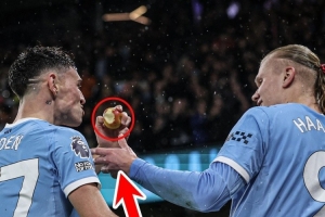 另类庆祝!多库破门之后,哈兰德与福登吃苹果庆祝