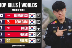 S15击杀榜:Gumayusi 103断层第一 deokdam Oner Faker并列第二