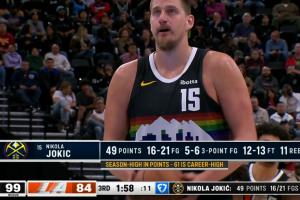 三节砍52分!约基奇生涯第4次砍50+ 超越奥尼尔