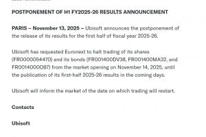 整大活?育碧在原定财报发布前几分钟推迟发布财报 并暂停股市交易