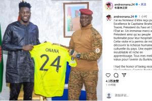照片中可以看到,奥纳纳赠送了一件自己欧联杯的签名球衣。奥纳纳写道:“我有幸受到布基纳法索总统易卜拉欣·特拉奥雷的接见。我衷心感谢总统和布基纳法索人民热情好客。这次访问让我更深入地了解了这个国家的人文与文化魅力。这是一段充满学习的难忘经历。我对布基纳法索的未来致以最美好的祝愿。”