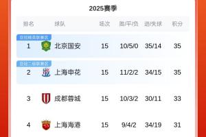 体育资讯06月26日讯 中超第15轮结束,赛季正式过半,积分榜情况如下
