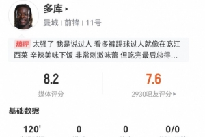 体育资讯7月1日讯 利雅得新月在世俱杯16强战4-3淘汰曼城,多库本场数据如下: