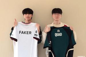 体育资讯7月3日讯 FLY战队晒Quad与Faker交换队服照片。