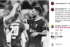 体育资讯7月3日讯 利物浦前锋若塔因车祸离世,队友麦卡利斯特也在社媒发文悼念。