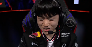 bin塞恩来的有点慢!T1对BLG砍瓜切菜 Keria当场一笑