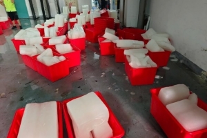 7月6日晚19:30镇江队对阵泰州队,75000公斤冰块堆成冰墙,2900桶饮用水将在30个点位发放,现场还将免费为观众提供供扇子、风油精等防暑降温物品。