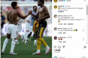多特官方社媒晒出球员赛后相互致意的照片,并写道:“未能如愿(晋级),祝贺皇马!”