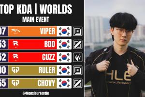 老公尽力了媒统计S15 KDA排行榜:Viper第一,KT、GEN各两人上榜