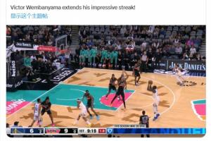 连续96场有盖帽!ESPN记者惊呼:文班这是从罚球线起跳帽了三分!