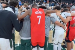 赢了也“加入”!赛后雄鹿队围成一圈祈祷 杜兰特&谢泼德也加入