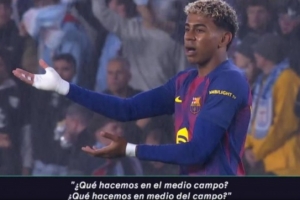 被塞尔塔打进一球后,亚马尔问队友:我们的中场在干嘛?