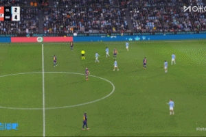 可惜啊!费尔明前场压迫对方中卫抢出机会,亚马尔单刀打门中柱