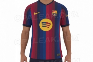巴萨下赛季主场球衣谍照:经典红蓝+条纹设计,赞助商标志金黄色
