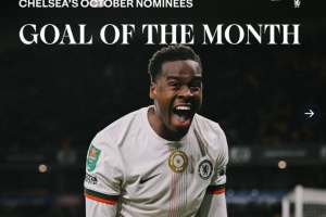 蓝军官方10月最佳进球候选:凯塞多重炮远射,吉滕斯诡异弧线在列