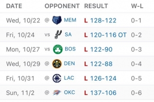 难顶!鹈鹕开季六连败 三场比赛惨败30+ 六场比赛一共净负109分