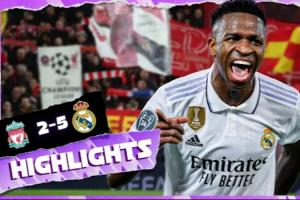 让2追5!23年欧冠,维尼修斯本泽马2射1传,皇马5-2客胜利物浦